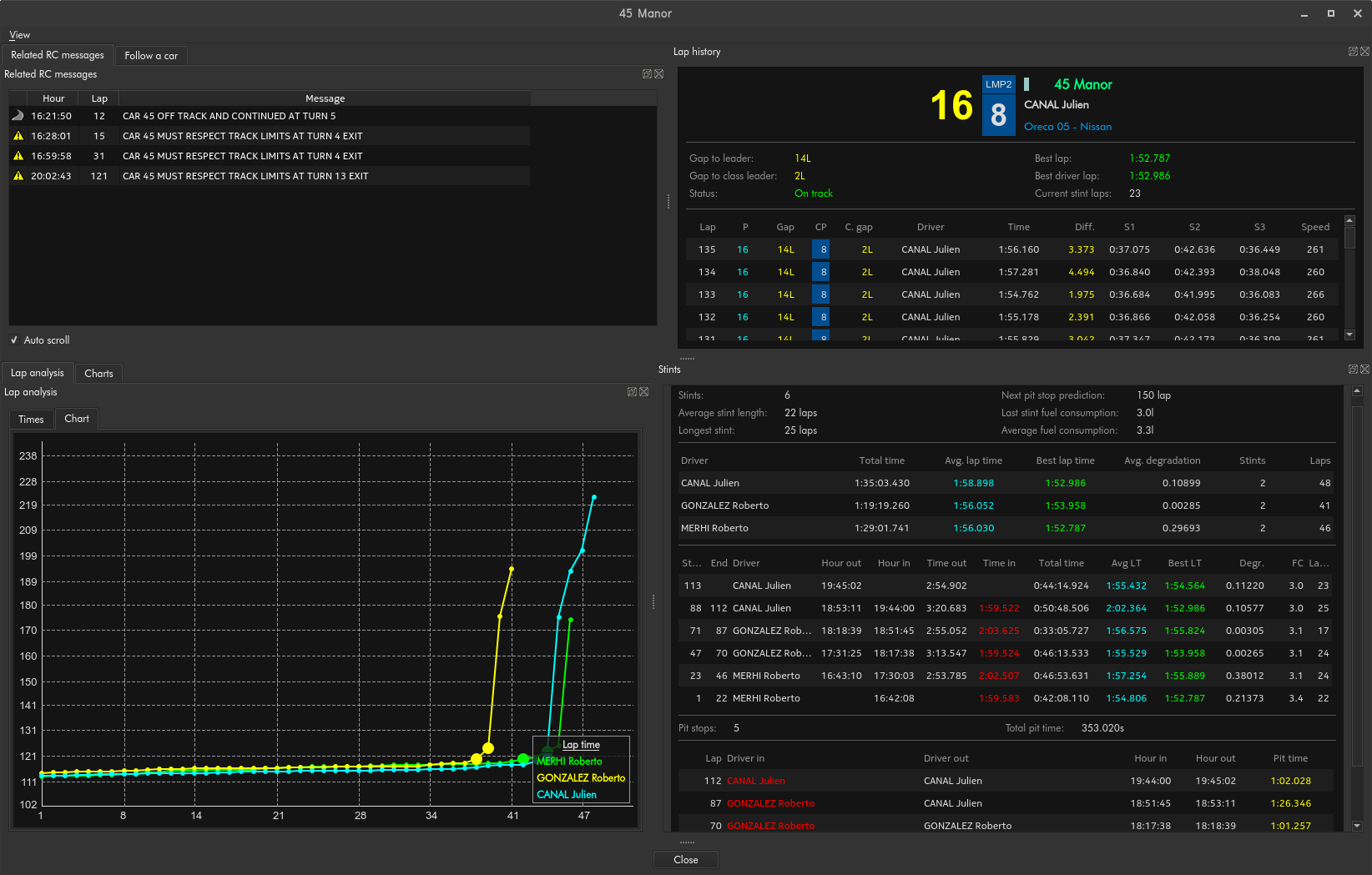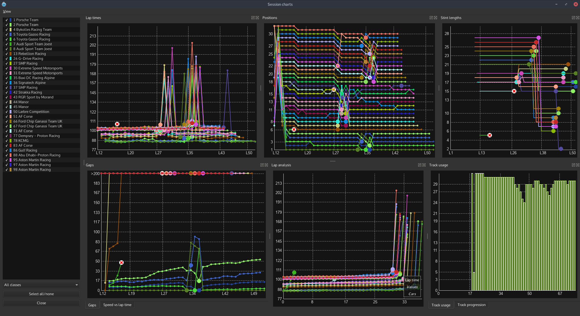 An advanced live timing data analysis software. It allows you to follow the track action with rich set of data which include: