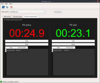 - Contains pit time measurement tool which allows to measure pit-in and pit-out times